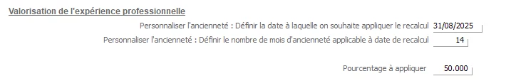 Je n’arrive pas à paramétrer une nouvelle salariée qui a 14 mois d’ancienneté à plein temps dans la branche (2019-2020). reprise à 50 %