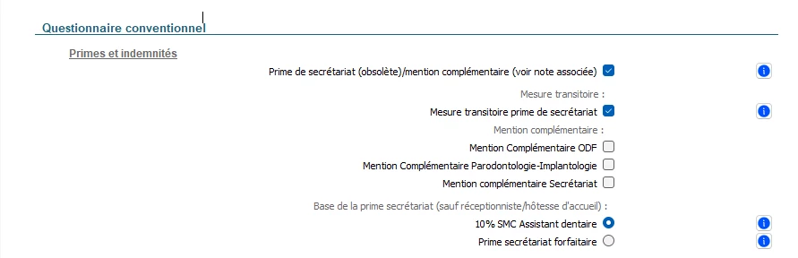 je viens de basculer un dossier sur sylae d un cabinet dentaire. l assistante est la depuis 10 ans et avait une prime de secretariat et d ancienneté sur sa fiche de paie.