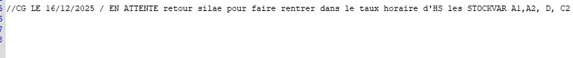 Je pensai donc indiquer un codage particulier sur le code libellé D02.CP pour indiquer les stockvar à prendre en compte pour la valorisation du taux HS.
