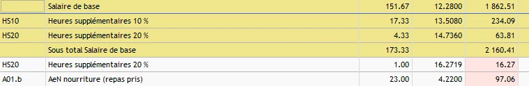 Par exemple, mon salarié qui est à 40h / semaine habituellement, si je lui rajoute 1h supp majorée à 20% , le taux est à 16.2719 au lieu de 14.7360