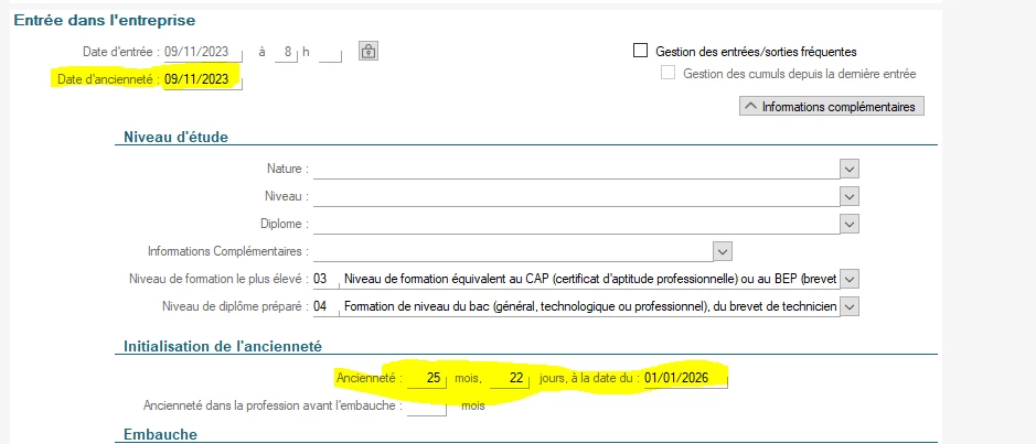 j’ai renseigné sa date de l’ancienneté ainsi que dans les informations complémentaires, mais la prime d’ancienneté ne s’affiche pas.