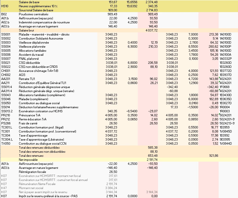 Je soumets son pourboire aux cotisations de prévoyance de 0.415 %, on obtient 1005.40 x 0.415% = 4,17 €, soit 1001.23. Je devrais avoir en net 2200+1001.23 = 3 201.23. Non ?