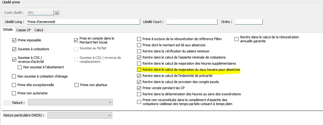 J’ai créer une fonction calcul pour une prime d’ancienneté savez vous ce que je dois rajouter à ce paramétrage pour que ma prime d'ancienneté ne rentre pas dans mon taux horaire d’absence CP svp ?
