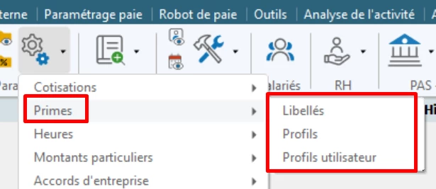 Je débute dans le codage et j’aimerai comprendre lorsque je veux paramétrer une prime, faut-il le faire dans “paramétrage” “prime” ”profil” ou dans “référentiel” ”prime” ”profil?