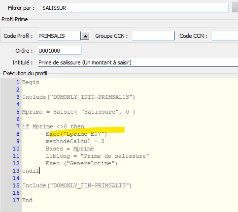 Nous pensions utiliser le profil de prime de salissure pour que le déclenchement puisse se faire automatiquement mais dans tous les cas c’est la rubrique E07 qui ressort.