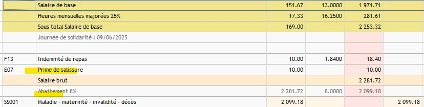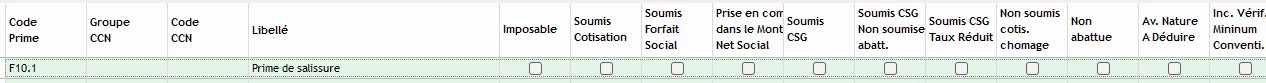 Dans le BTP, la prime de salissure doit être exonérée de cotisations, net imposable et net social pour les salariés sans abattement qui en bénéficient.(rubrique F10.1 existante)