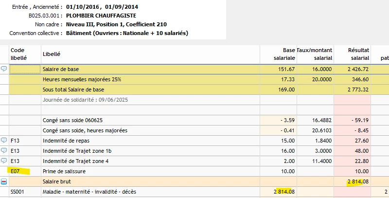 => La E07 doit se déclencher si le salarié a de l’abattement