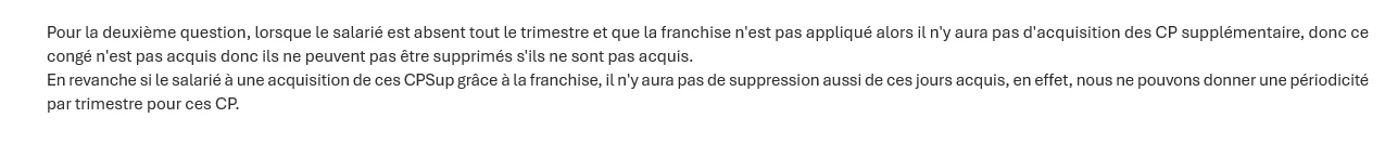 Malgré le paramétrage suivant mis en place dans les fiches salariés concernés, les conges trimestriels (DT) ne s’alimentent pas.
