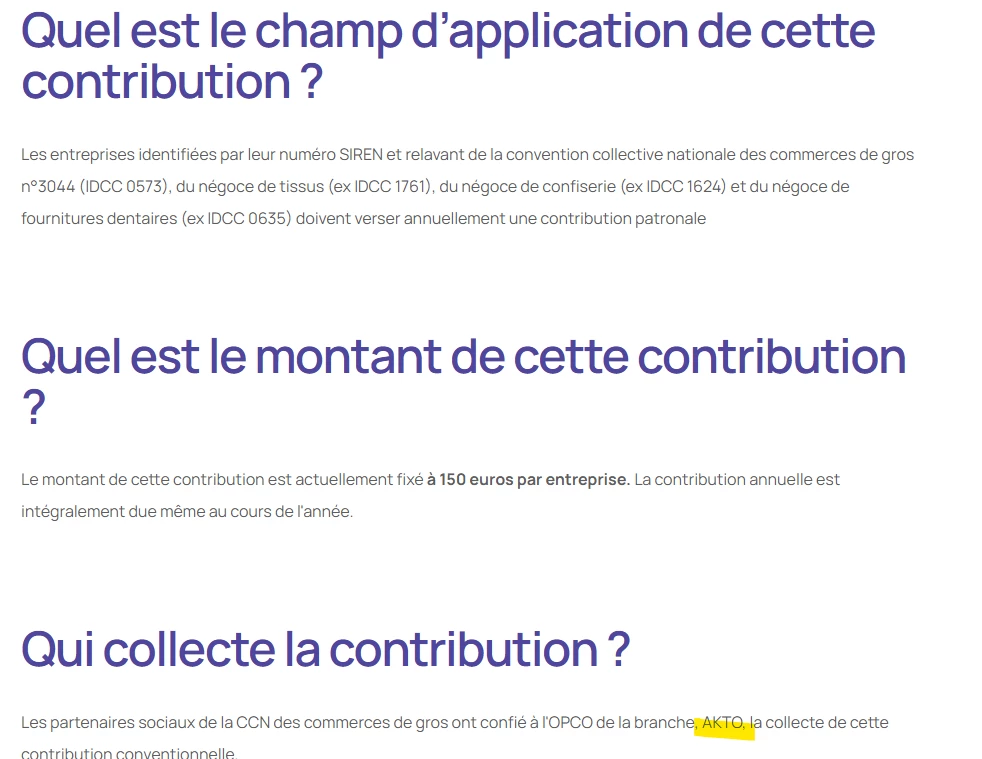 Une entreprise dont la convention collective est le commerce de gros à une cotisation nommée “développement du paristarisme forfait société” à 150e / an sur la reférence TC124