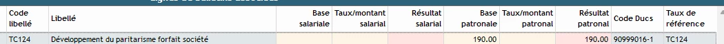 Une entreprise dont la convention collective est le commerce de gros à une cotisation nommée “développement du paristarisme forfait société” à 150e / an sur la reférence TC124