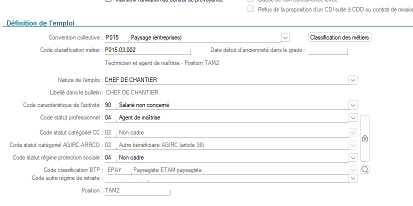 Je tente de paramétrer un Etam dans une entreprise paysagiste.