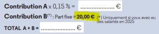 - Une part B à hauteur de 0.07% majoré d’un montant forfaitaire de 15€