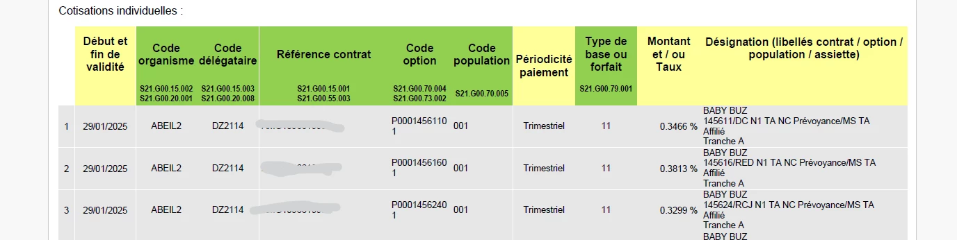 J’essaie de faire PR110 pour le 1er taux, PR110.1 pour le second taux, PR120.2 pour le troisième (comme je le fais pour la mutuelle) mais seul le PR110 apparaît.