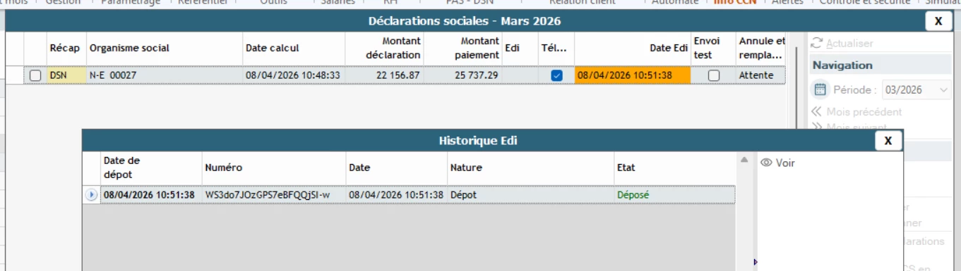 Depuis le mois dernier, l’envoi de la DSN reste bloqué sur cette position.