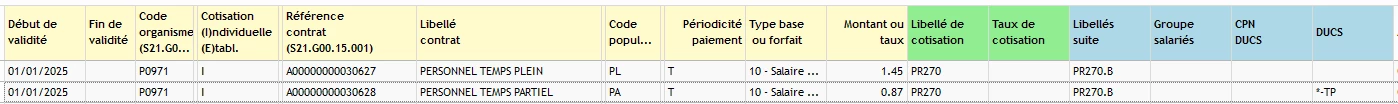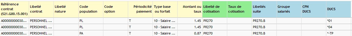 Je dois séparer les deux cotisations (1,45% temps plein et 0,87% temps partiel) à l’aide du code DUCS (dernière colonne) :