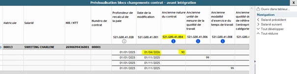Ici S21.G00.41.004” ancienne nature du contrat” est à 90, alors qu’elle devrait être à l’ancienne valeur (81 - Mandat d’élu).