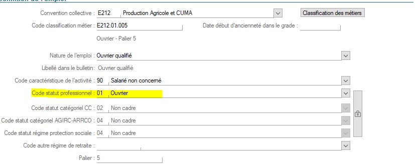sur mon dossier le code statut professionnel est verrouillé , il faudrait donc déverrouillé et mettre le code ouvrier ?? de plus tout les employés ne sont pas soumis au taux bureau .