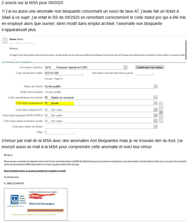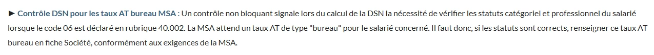 Bonjour, le salarié qui est un apprenti jardinier est paramétré avec le taux AT Apprenti APMSA, mais lors de la dsn, j’ai ce message “ Assurez-vous que les statuts catégoriel et professionnel du salarié soient corrects. Si oui, ajouter un taux AT bureau”