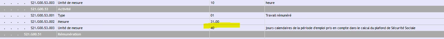 Sur l’un de nos dossiers, nous avons de nombreuses anomalies pour des salariés qui ont été absents où la remontée DSN pour le code rubrique S21.G00.53.003 remonte avec le code 10 à savoir une unité de mesure en heure pour le PSS.