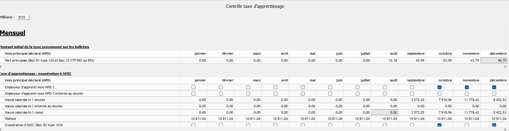l’assiette de ma taxe d’apprentissage calculé avec le module de contrôle sur le millésime 2025, ne correspond pas à ce que j’ai dans mon tableau de charge. Il y a 5/6 salariés en paie.