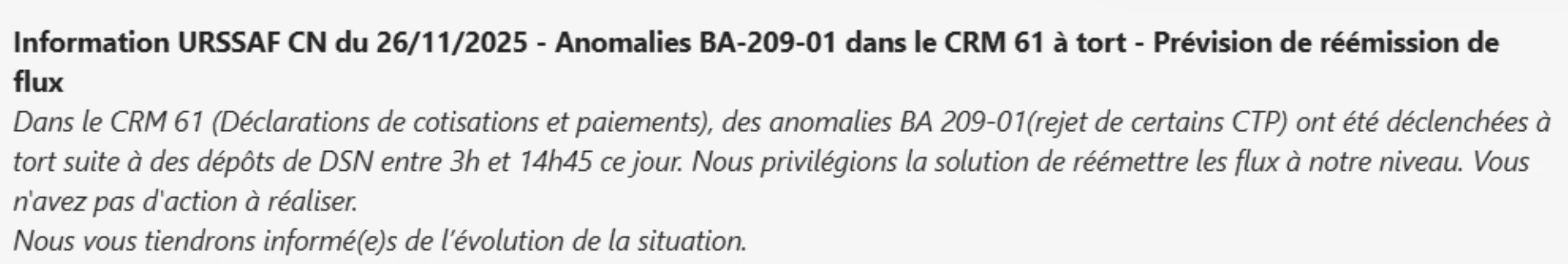 J’ai l’impression que les dsn qui partent ce matin, sont réceptionnées avec anomalie non indiquée à l’urssaf, mais le bordereau est incomplet.