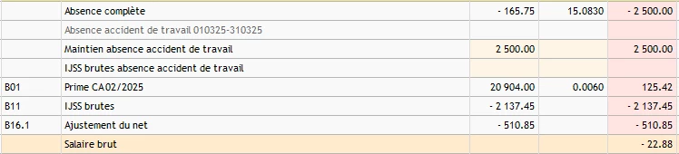 Régulièrement nous déclarons des absences des mois antérieurs sur nos bulletins. Ceci génère parfois un brut négatif. J’ai trouvé une question sur ce sujet dans la communauté qui expliquait qu’il n’y avait plus de tolérance sur ce point depuis janvier 2025.