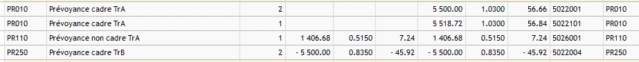 Pourtant aucune TB ni TC sur le bulletin mais uniquement de la TA (PR001/PR010).
