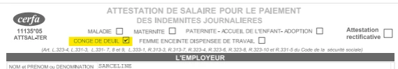 En effet, le CERFA Actuel ne fait pas apparaitre la coche congé de deuil.