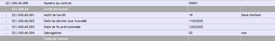 Cependant, le fichier DSN évènementiel fait bien remonter le motif 19 - Congé de deuil