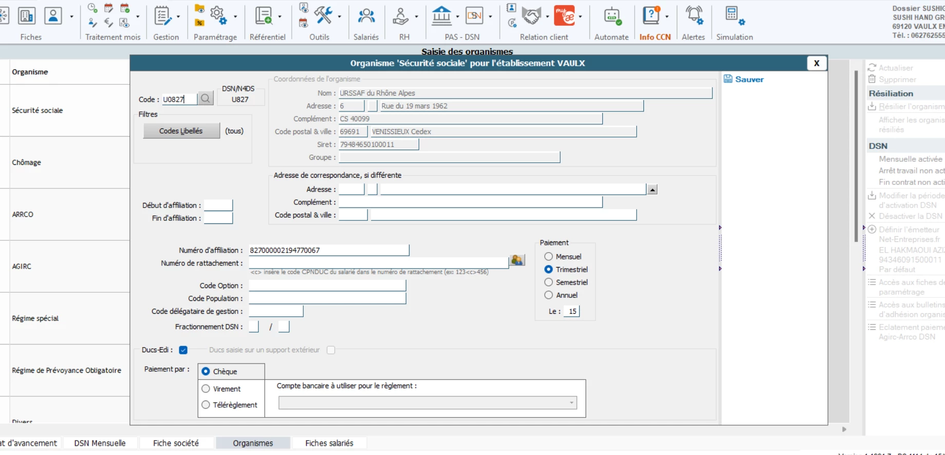 J’ai une DSN rejetée. Je pense que c’est parce que je n’ai pas renseigné le compte bancaire au niveau de l’organisme. Sommes-nous obligés de renseigner le compte bancaire ?