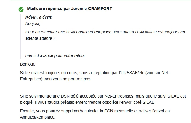 j’essai de supprimer une DSN et refaire une dsn qui annule et remplace et impossible à faire