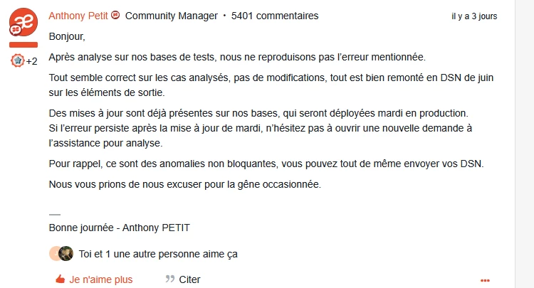 Normalement, cela doit être réglé dans la MAJ de ce jour si vous recalculez les DSN Mensuelles concernées.