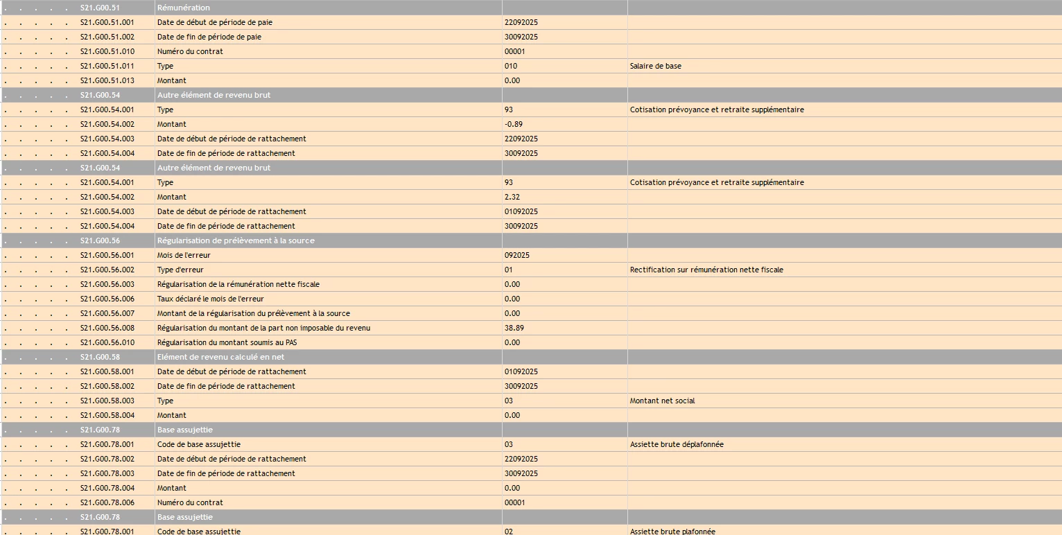 Je viens de générer une dsn mensuelle qui contient des lignes de régularisation du mois dernier, alors que le mois dernier était complet, et sur la régularisation automatique les salaires indiqués sont à zéro.