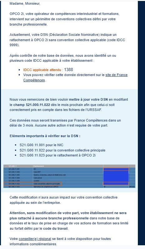 Je ne trouve pas la solution.. et en attendant, le client n’est pas connu au sein d’OPCO 2i…