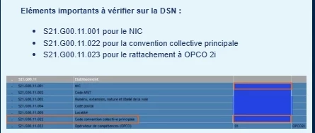 - S21.G00.11.022 : Code convention collective principale (veut aussi dire convention collective applicable) – il faut sur ce champ rectifié le code IDCC et indiqué 1423 (convention collective de la navigation).