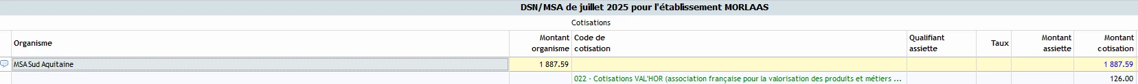 - au moment de la DSN seul le montant de la TVA remonte et pas le montant de la cotisation