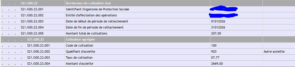 En créant un bloc de régularisation pour un taux AT de janvier, le logiciel me rajoute dans le récap DSN une ligne à 13.26% alors que dans le détail de ma DSN, je n’ai jamais renseigné de demande de régularisation à ce taux. Voici la totalité de mon bloc concernant janvier: