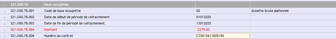 - Modifier dans la DSN de 12/2025 le bloc S21.G00.78 pour modifier le plafond et indiquer les 1645.97e de l’URSSAF (13/31*3925)