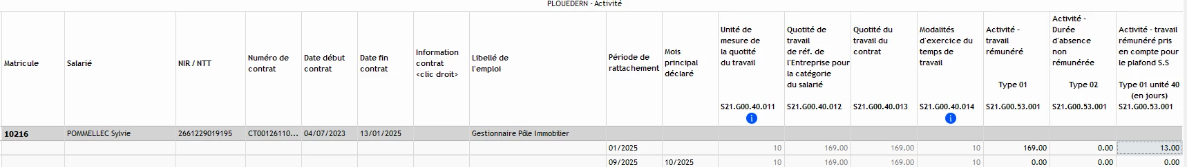 Suite retour anomalie URSSAF, notre cliente a remarqué que l’absence entrée/sortie ne s’était pas calculé sur 01/2025 pour un salarié sorti le 13/01.