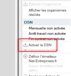 Il faut aller dans les organismes et activer la DSN sur le bandeau de droite :