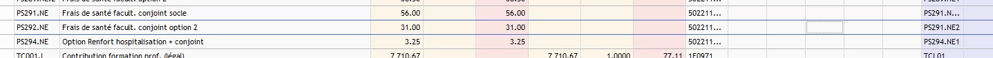 Mais pour mon option 2 (à 31 euros) j’ai le même code PS292.NE et le même taux de cotisation PS291.NE2 (voir photo)