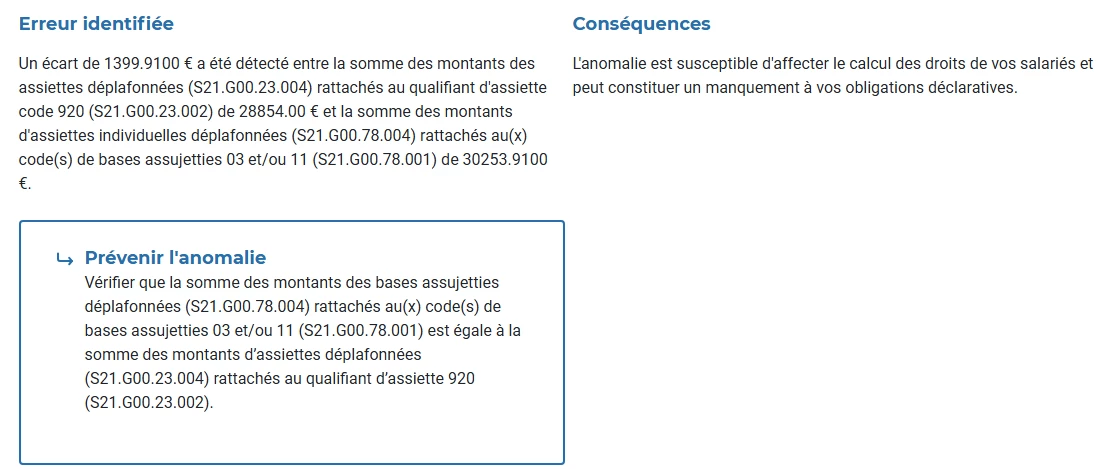 J’ai une incohérence URSSAF entre la somme des montants des assiettes déplafonnées des données agrégées et celle des données individuelles dû à mon stagiaire AFPR.