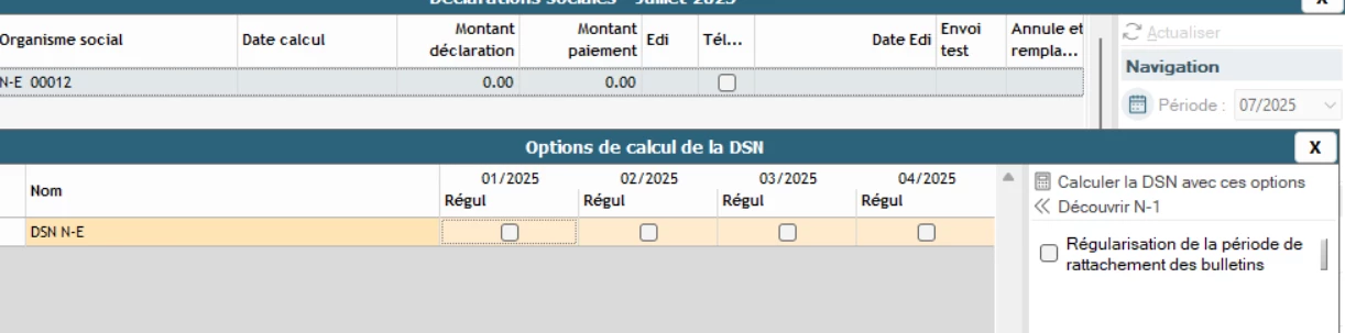 L’assistance m’a dit de cocher “ régul DSN 01/2025” lors du calcul de la DSN de juillet mais je vois pas ou cela setrouve.