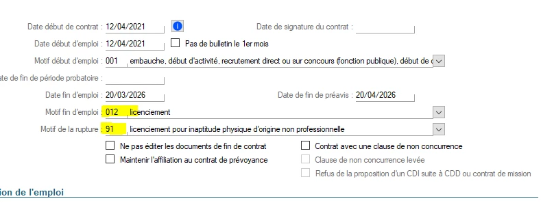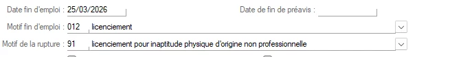 Le salarié est licencié pour inaptitude non professionnelle j’ai mis le code de sortie 91 et j’ai cette erreur sur le calcul de la DSN.