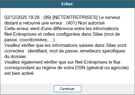 Une de nos clientes qui utilise le logiciel SILAE ne parvient plus à déposer de DSN, que ce soit des DSN évènementielles ou bien la DSN mensuelle.