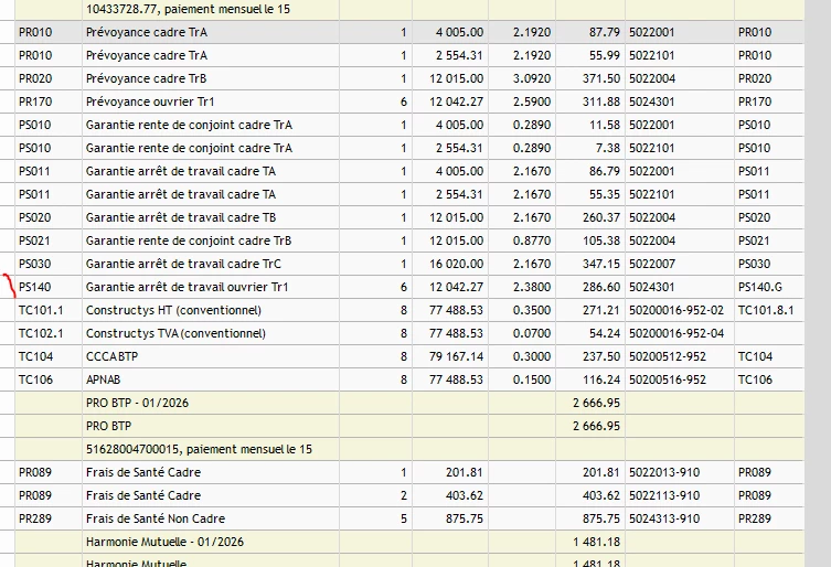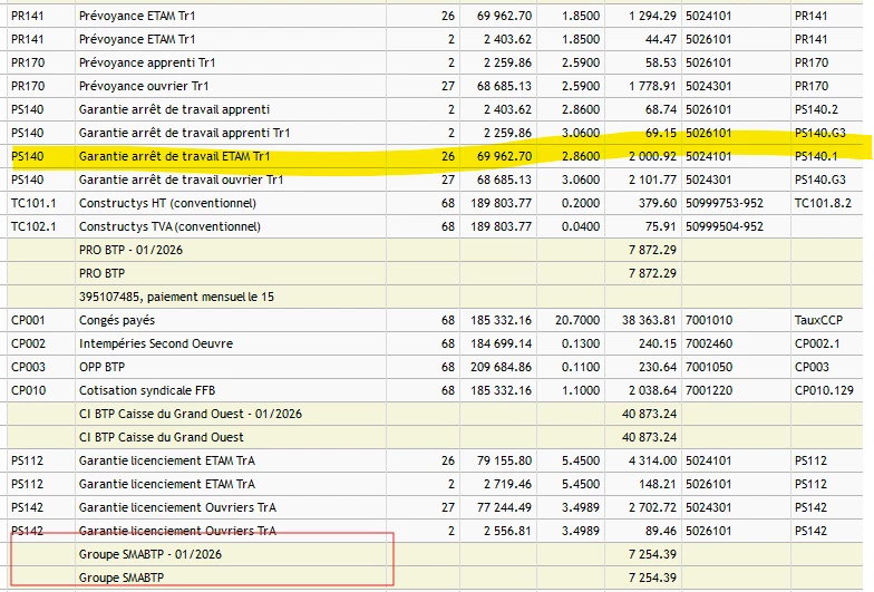 Cependant le le tableau des charges la PS140 des ETAM se met tout de même à la BTP prévoyance au lieu de la SMA BTP …