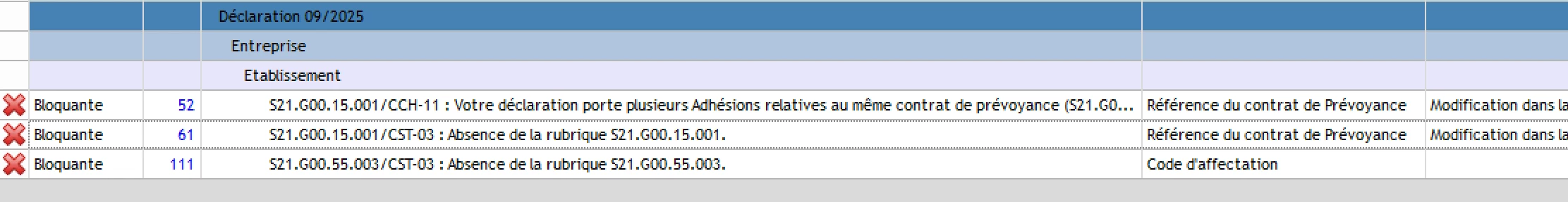 Après avoir enregistré et paramétré la fiche de paramétrage de la prévoyance, j’ai un avertissement non bloquant au moment de la DSN.