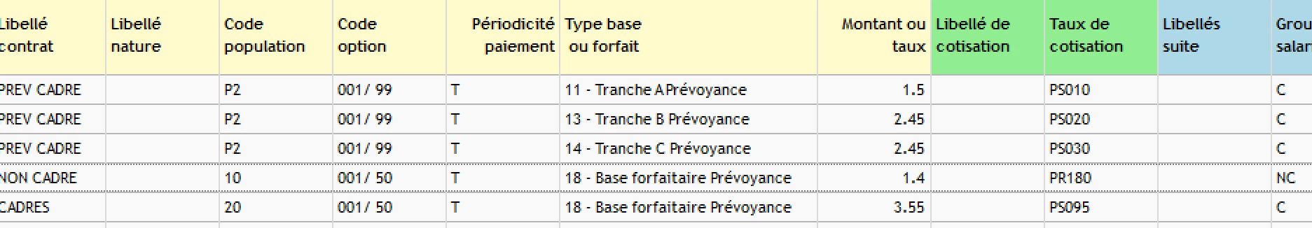 Pour la PR180, si vous l’avez affectée à un “Contrat complémentaire”, il convient alors de mettre ce code autant en colonne “Libellé de cotisation” (libellé principal du contrat complémentaire) qu’en colonne “Taux de cotisation”.