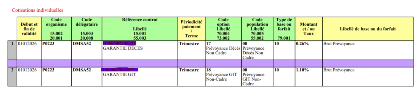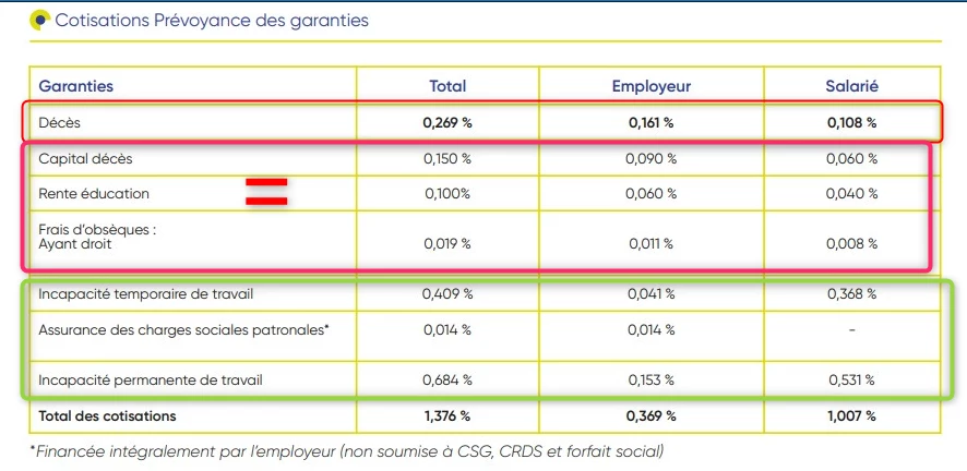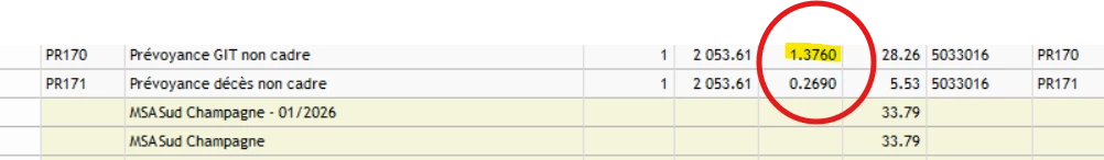 aujourd’hui à eu lieu la mise a jour des taux de cotisation prévoyance pour les