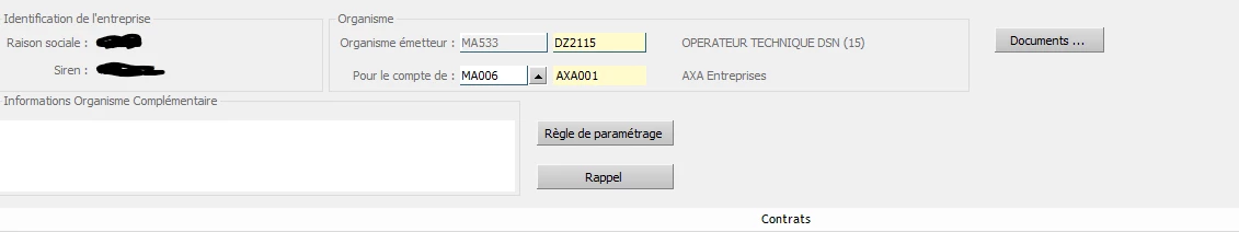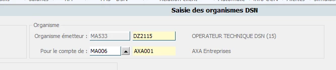 J’ai une nouvelle fiche de paramétrage au 1.12 avec l’organisme émetteur DZ2115 pour le compte d’AXA.